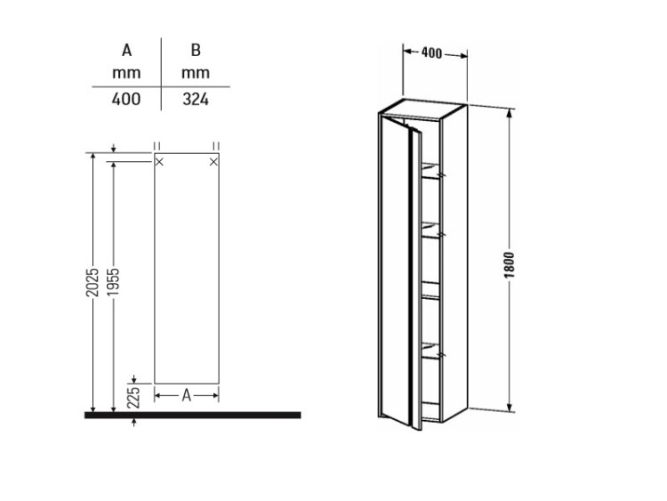 Шкаф-пенал, Duravit, Ketho, ширина, мм-400, глубина, мм-360, высота, мм-1800, тип установки-подвесной, дверцы-есть, открывание дверей-распашное, петли-слева, материал корпуса-ДСП меламиновая смола, материал фасада-ДСП меламиновая смола, цвет-орех натуральный, комплектация-3 стеклянные полки, 1 деревянная полка Шкаф-пенал, Duravit, Ketho, шгв 400*360*1800, петли-слева, цвет-орех натуральный