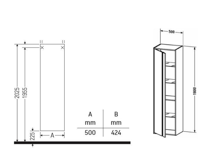 Шкаф-пенал, Duravit, Ketho, ширина, мм-500, глубина, мм-360, высота, мм-1800, тип установки-подвесной, дверцы-есть, открывание дверей-распашное, петли-справа, материал корпуса-ДСП меламиновая смола, материал фасада-ДСП меламиновая смола, цвет-белый матовый, комплектация-1 дверца, 3 стеклянные полки, 1 деревянная полка Шкаф-пенал, Duravit, Ketho, шгв 500*360*1800, петли-справа, цвет-белый матовый