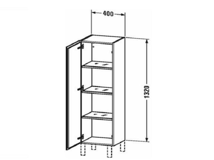 Шкаф-пенал, Duravit, L-Cube, ширина, мм-400, глубина, мм-363, высота, мм-1320, тип установки-подвесной, дверцы-есть, открывание дверей-распашное, петли-справа, материал корпуса-ДВП лак, материал фасада-ДВП лак, цвет-черный глянцевый, с 3 стеклянными полками с алюминиевым кронштейном Шкаф-пенал, Duravit, L-Cube, шгв 400*363*1320, петли-справа, цвет-черный глянцевый