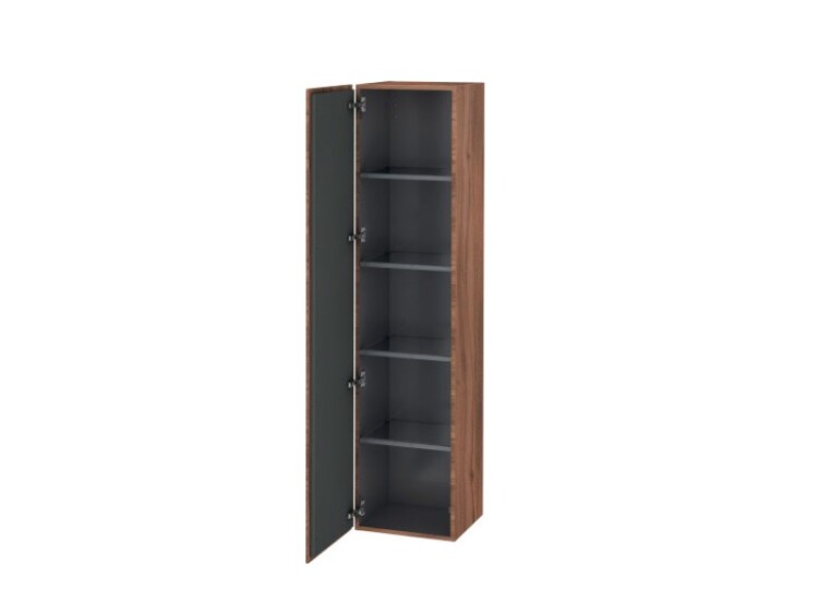 Шкаф-пенал, Duravit, L-Cube, ширина, мм-400, глубина, мм-363, высота, мм-1760, тип установки-подвесной/напольный, дверцы-есть, открывание дверей-распашное, петли-справа, материал корпуса-ДСП меламиновая смола, материал фасада-ДСП меламиновая смола, цвет-орех натуральный, комплектация-1 дверца, 4 стеклянные полки с алюминиевым кронштейном Шкаф-пенал, Duravit, L-Cube, шгв 400*363*1760, петли-справа, цвет-орех натуральный