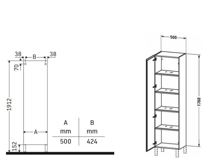 Шкаф-пенал, Duravit, L-Cube, ширина, мм-500, глубина, мм-363, высота, мм-1760, тип установки-подвесной/напольный, дверцы-есть, открывание дверей-распашное, петли-справа, материал корпуса-ДСП меламиновая смола, материал фасада-ДСП меламиновая смола, цвет-серо-коричневый матовый, 4 стеклянные полки с алюминиевым кронштейном Шкаф-пенал, Duravit, L-Cube, шгв 500*363*1760, петли-справа, цвет-серо-коричневый матовый