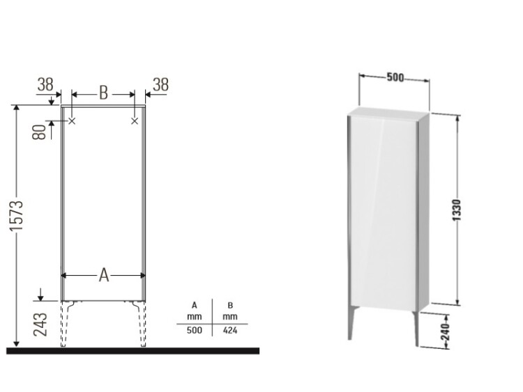 Шкаф-пенал, Duravit, XViu, ширина, мм-500, глубина, мм-240, высота, мм-1330, тип установки-напольный, дверцы-есть, открывание дверей-распашное, петли-слева, цвет-лен, поверхность бокового алюминиевого профиля-Champagne Matt, ножки-необходимо заказать Шкаф-пенал, Duravit, XViu, шв 500*240*1330, петли-слева, цвет-лен