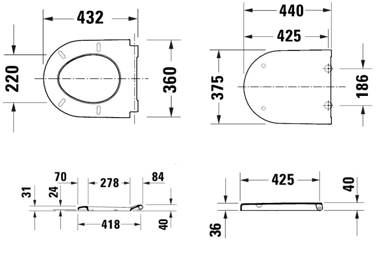 Сиденье для унитаза, Duravit, D-Code, с крышкой, ширина, мм-360, глубина, мм-440, с плавным опусканием SoftClose, цвет шарниров-нержавеющая сталь, цвет-белый Сиденье для унитаза, Duravit, D-Code, шг 360*440, цвет-белый