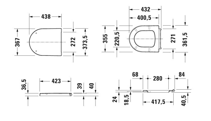Сиденье для унитаза, Duravit, ME by Starck, с крышкой, ширина, мм-370, глубина, мм-420, высота, мм-30, тип шарниров-SoftClose, материал шарниров-нержавеющая сталь, цвет шарниров-хром, цвет-белый Сиденье для унитаза, Duravit, ME by Starck, шгв 370*420*30, цвет-белый