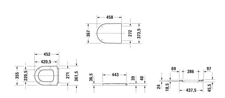 Сиденье для унитаза, Duravit, ME by Starck, с крышкой, ширина, мм-370, глубина, мм-440, высота, мм-30, тип шарниров-SoftClose, материал шарниров-нержавеющая сталь, цвет шарниров-хром, цвет-белый Сиденье для унитаза, Duravit, ME by Starck, шгв 370*440*30, цвет-белый