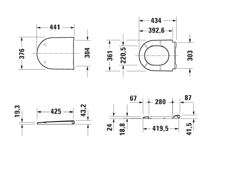 Сиденье для унитаза, Duravit, D-Neo, с крышкой, ширина, мм-376, глубина, мм-441, с плавным опусканием, материал шарниров-нержавеющая сталь, цвет шарниров-нержавеющая сталь, материал сиденья-дюропласт, цвет-белый Сиденье для унитаза, Duravit, D-Neo, шг 376*441, цвет-белый