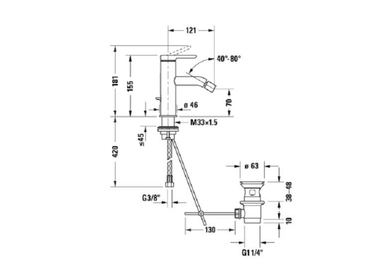 Смеситель для биде, Duravit, C.1, тип открывания воды-однорычажный, тип регулирования воды-керамический картридж, отверстия для монтажа-1, высота, мм-155, вынос излива, мм-121, донный клапан-есть, стандарт подвода воды-3/8", цвет-Black Matt Смеситель для биде, Duravit, C.1, цвет-Black Matt