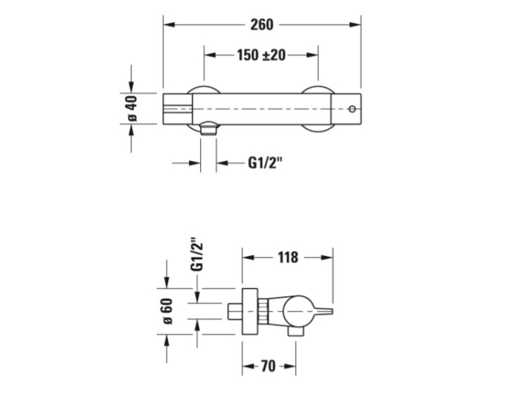 Смеситель для душа, Duravit, B.1, тип регулирования воды-термостатический картридж, тип установки-настенный, отверстия для монтажа-2, цвет-хром, защитная блокировка при 38°C, клапан обратного тока в муфте шланга, переходник для шланга DN15, соединительный патрубок размер DN15 Смеситель для душа, Duravit, B.1, цвет-хром