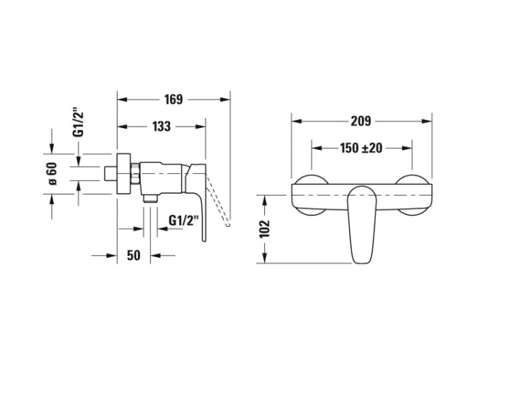 Смеситель для душа, Duravit, B.1, тип открывания воды-однорычажный, тип регулирования воды-керамический картридж, тип установки-настенный, отверстия для монтажа-2, цвет-хром Смеситель для душа, Duravit, B.1, цвет-хром