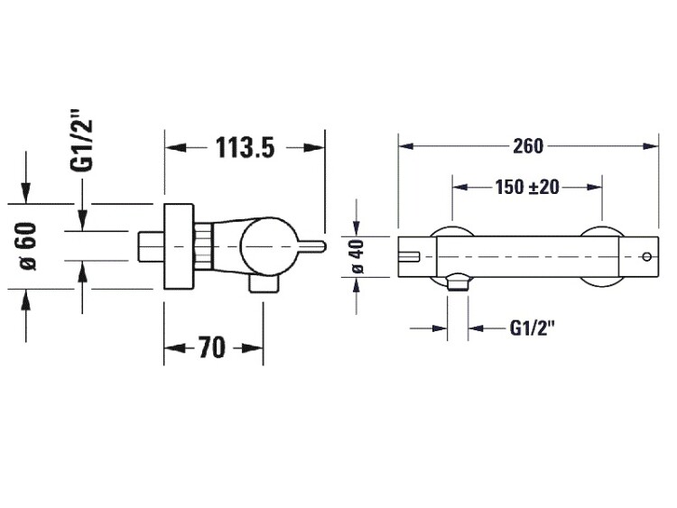 Смеситель для душа, Duravit, B.2, тип открывания воды-одновентильный, тип регулирования воды-термостатический картридж, тип установки-настенный, отверстия для монтажа-2, цвет-хром Смеситель для душа, Duravit, B.2, цвет-хром