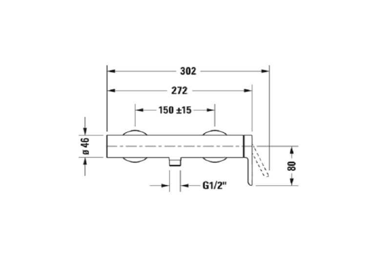 Смеситель для душа, Duravit, C.1, тип открывания воды-однорычажный, тип регулирования воды-керамический картридж, тип установки-настенный, отверстия для монтажа-2, цвет-хром, клапан обратного тока в муфте шланга, расход воды 12,6 л/мин (3 бара), переходник для шланга DN15, соединительный патрубок размер DN15 Смеситель для душа, Duravit, C.1, цвет-хром