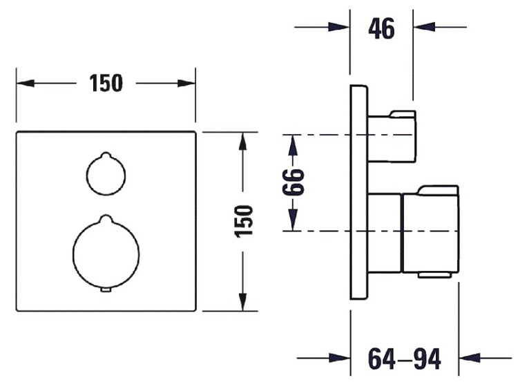 Смеситель для душа, Duravit, C.1, тип открывания воды-одновентильный, тип регулирования воды-термостатический картридж, тип установки-встраиваемый, внутренняя часть-необходимо заказать, цвет-хром Смеситель для душа, Duravit, C.1, цвет-хром