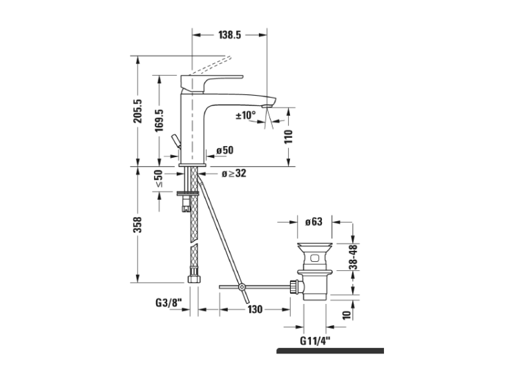 Стандарт подводки | 3/8" |