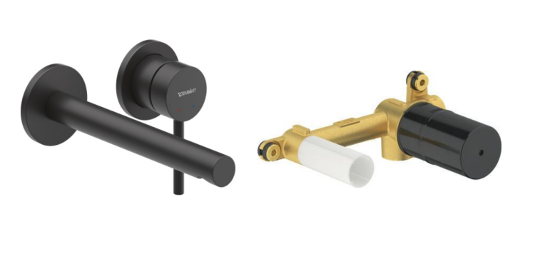 Смеситель для раковины, Duravit, Circle, тип открывания воды-однорычажный, тип регулирования воды-керамический картридж, монтаж-настенный встраиваемый, отверстия для монтажа-2, высота, мм-85, вынос излива, мм-200, тип излива-неподвижный, донный клапан-отсутствует, тип подводки-жесткая, стандарт подвода воды-1/2", внутренняя часть-в комплекте, цвет-черный матовый Смеситель для раковины, Duravit, Circle, внутренняя часть-в комплекте, цвет-черный матовый