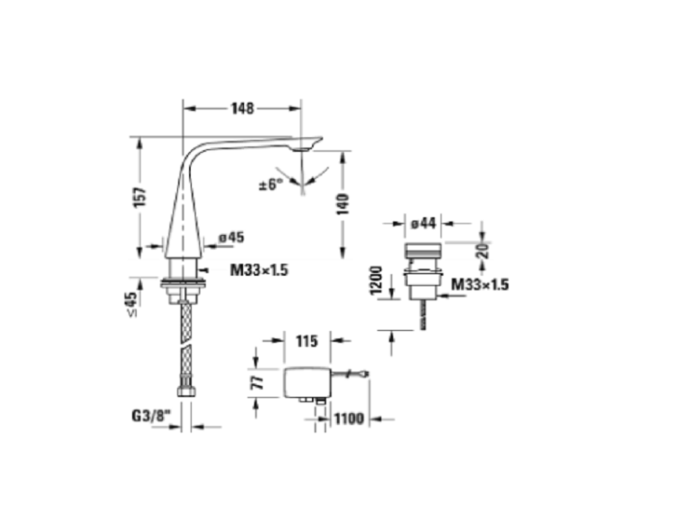 Смеситель для раковины, Duravit, D.1, тип открывания воды-электронный, отверстия для монтажа-2, высота, мм-253, вынос излива, мм-180, стандарт подвода воды-3/8", цвет-черный матовый Смеситель для раковины, Duravit, D.1, цвет-черный матовый
