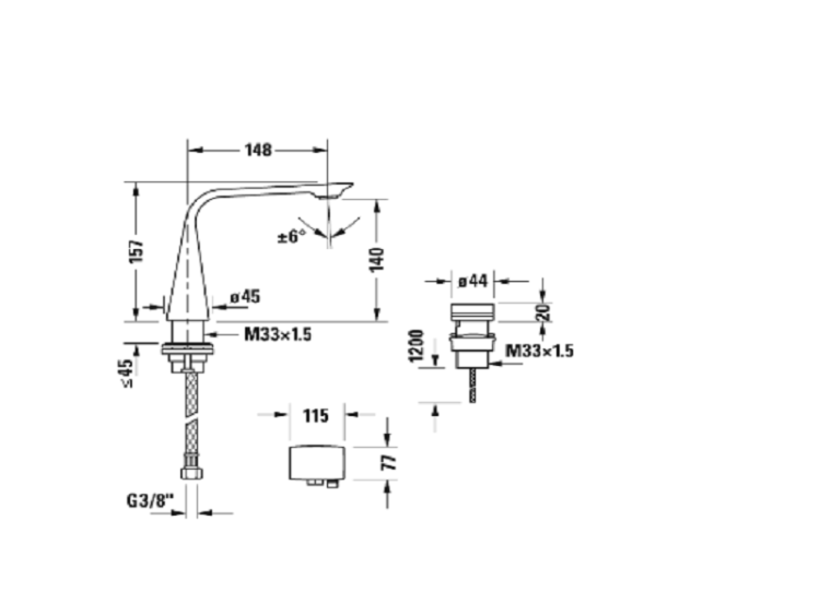 Смеситель для раковины, Duravit, D.1, тип открывания воды-электронный, отверстия для монтажа-2, высота, мм-253, вынос излива, мм-180, стандарт подвода воды-3/8", цвет-черный матовый Смеситель для раковины, Duravit, D.1, цвет-черный матовый