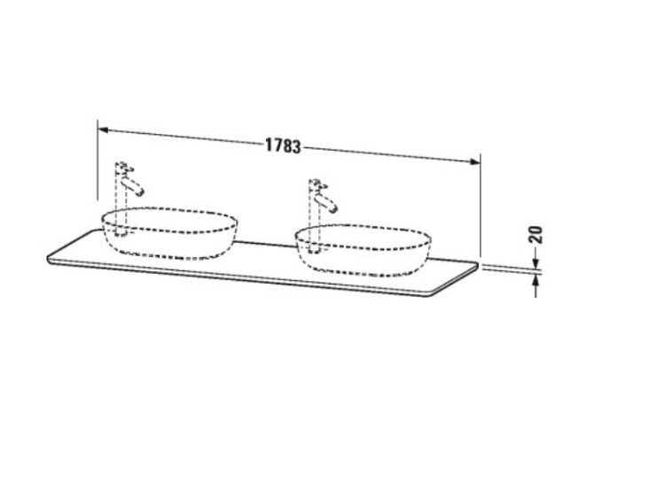 Столешница, Duravit, Luv, ширина, мм-1783, глубина, мм-595, высота, мм-20, тип установки-на тумбу, вырез под раковину-два, материал-кварцевый камень, цвет-серый структурный Столешница, Duravit, Luv, шгв 1783*595*20, цвет-серый структурный