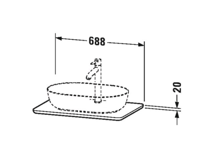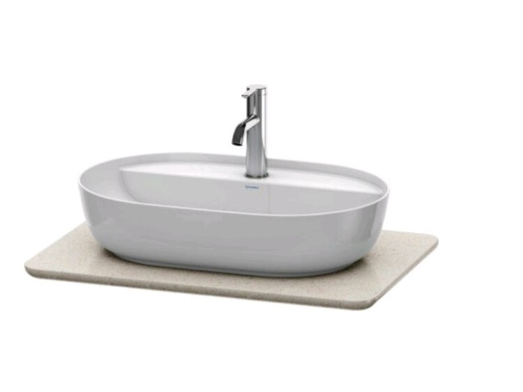 Столешница, Duravit, Luv, ширина, мм-688, глубина, мм-475, высота, мм-20, тип установки-на тумбу, вырез под раковину-один, материал-кварцевый камень, цвет-серый структурный Столешница, Duravit, Luv, шгв 688*475*20, цвет-серый структурный