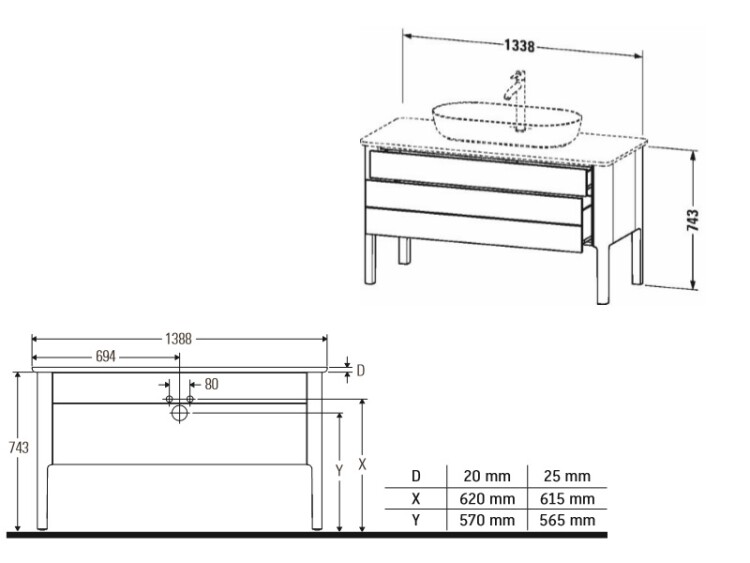 Тумба для консоли, Duravit, Luv, ширина, мм-1338, глубина, мм-570, высота, мм-743, тип установки-напольный, форма мебели-прямоугольная, раковина-необходимо заказать, консоль/столешница-необходимо заказать, ящики-2, открывание-выдвижное, материал корпуса-ДВП лак, материал фасада-ДВП лак, цвет-скандинавский белый шелковисто-матовый, верхний ящик с вырезом и крышкой для сифона, регулятор высоты, встроенный в ножку (-5 мм + 20 мм) Тумба для консоли, Duravit, Luv, шгв 1338*570*743, раковина-необходимо заказать, цвет-скандинавский белый шелковисто-матовый