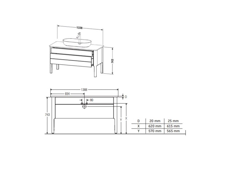 Тумба для консоли, Duravit, Luv, ширина, мм-1388, глубина, мм-570, высота, мм-743, тип установки-напольный, форма мебели-прямоугольная, раковина-необходимо заказать, консоль/столешница-необходимо заказать, ящики-2, открывание-выдвижное, материал корпуса-ДВП лак, материал фасада-ДВП лак, цвет-белый шелковисто-матовый, верхний ящик с вырезом и крышкой для сифона, регулятор высоты, встроенный в ножку (-5 мм + 20 мм) Тумба для консоли, Duravit, Luv, шгв 1388*570*743, раковина-необходимо заказать, цвет-белый шелковисто-матовый