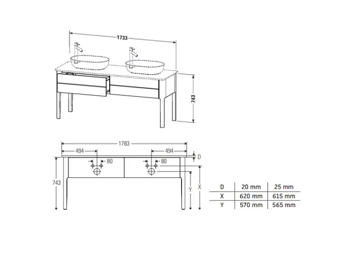 Тумба для консоли, Duravit, Luv, ширина, мм-1783, глубина, мм-570, высота, мм-743, тип установки-напольный, форма мебели-прямоугольная, раковина-необходимо заказать, количество раковин-2, консоль/столешница-необходимо заказать, ящики-2, открывание-выдвижное, материал корпуса-ДВП лак, материал фасада-ДВП лак, цвет-скандинавский белый шелковисто-матовый, регулятор высоты, встроенный в ножку (-5 мм + 20 мм) Тумба для консоли, Duravit, Luv, шгв 1783*570*743, раковина-необходимо заказать, цвет-скандинавский белый шелковисто-матовый
