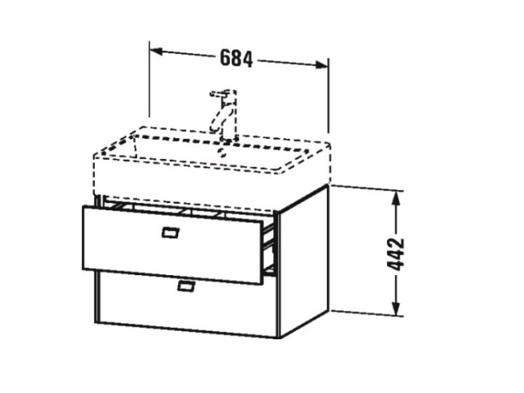 Тумба под раковину, Duravit, Brioso, ширина, мм-684, глубина, мм-459, высота, мм-442, тип установки-подвесной, форма мебели-прямоугольная, раковина-необходимо заказать, ящики-2, открывание-выдвижное, верхний ящик с вырезом и крышкой для сифона, цвет ручки-в цвет мебели, материал корпуса-ДСП ламинат, материал фасада-ДСП ламинат, цвет-белый глянцевый Тумба под раковину, Duravit, Brioso, шгв 684*459*442, раковина-необходимо заказать, цвет-белый глянцевый
