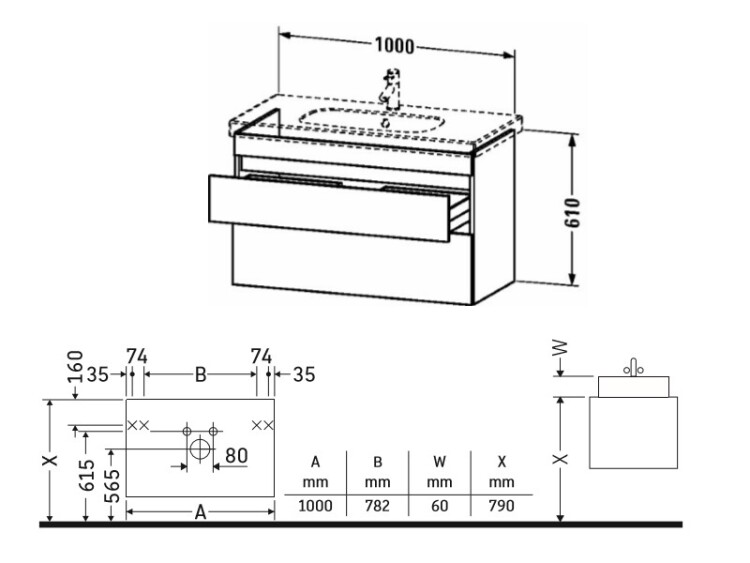 Тумба под раковину, Duravit, Durastyle, ширина, мм-1000, глубина, мм-453, высота, мм-610, тип установки-подвесной, форма мебели-прямоугольная, раковина-необходимо заказать, ящики-2, открывание-выдвижное, материал корпуса-ДСП меламиновая смола, материал фасада-ДСП меламиновая смола, цвет-базальт матовый, верхний ящик с вырезом и крышкой для сифона Тумба под раковину, Duravit, Durastyle, шгв 1000*453*610, раковина-необходимо заказать, цвет-базальт матовый
