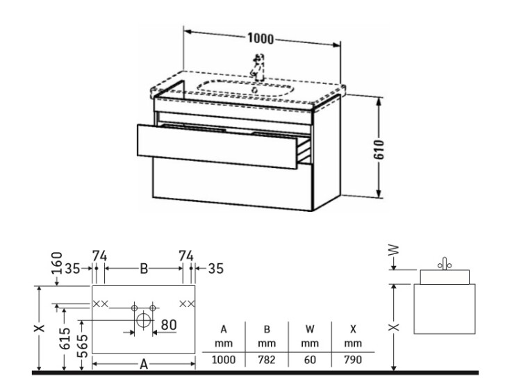 Тумба под раковину, Duravit, Durastyle, ширина, мм-1000, глубина, мм-453, высота, мм-610, тип установки-подвесной, форма мебели-прямоугольная, раковина-необходимо заказать, ящики-2, открывание-выдвижное, материал корпуса-ДСП меламиновая смола, материал фасада-ДСП меламиновая смола, цвет-орех натуральный, верхний ящик с вырезом и крышкой для сифона Тумба под раковину, Duravit, Durastyle, шгв 1000*453*610, раковина-необходимо заказать, цвет-орех натуральный