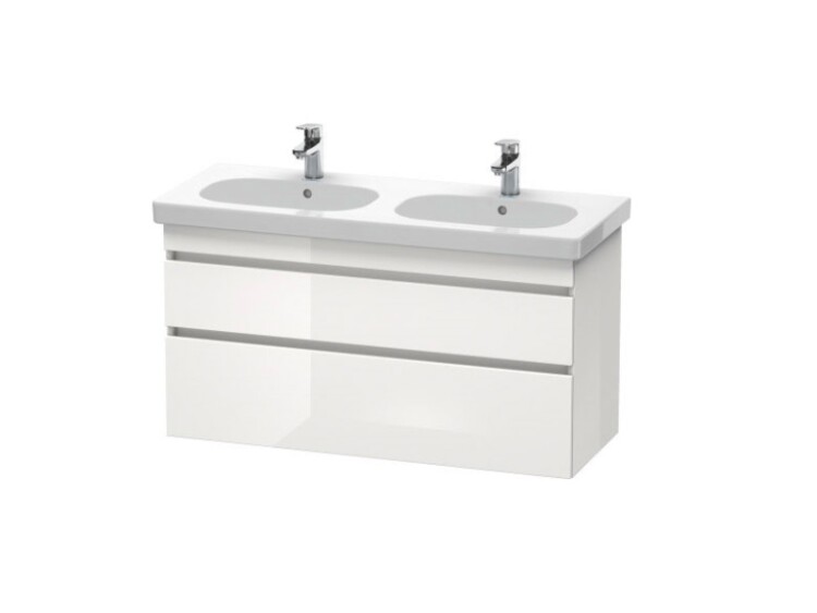 Тумба под раковину, Duravit, Durastyle, ширина, мм-1150, глубина, мм-453, высота, мм-610, тип установки-подвесной, форма мебели-прямоугольная, раковина-необходимо заказать, двойную, ящики-2, открывание-выдвижное, материал корпуса-ДСП меламиновая смола, материал фасада-ДСП меламиновая смола, цвет-белый глянцевый, верхний ящик с вырезом и крышкой для сифона Тумба под раковину, Duravit, Durastyle, шгв 1150*453*610, раковина-необходимо заказать, цвет-белый глянцевый
