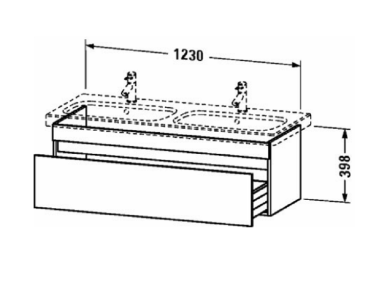 Тумба под раковину, Duravit, Durastyle, ширина, мм-1230, глубина, мм-448, высота, мм-398, тип установки-подвесной, форма мебели-прямоугольная, раковина-необходимо заказать, ящики-1, открывание-выдвижное, материал корпуса-ДСП меламиновая смола, материал фасада-ДСП меламиновая смола, цвет-белый матовый, с вырезом под сифон и крышкой сифона Тумба под раковину, Duravit, Durastyle, шгв 1230*448*398, раковина-необходимо заказать, цвет-белый матовый