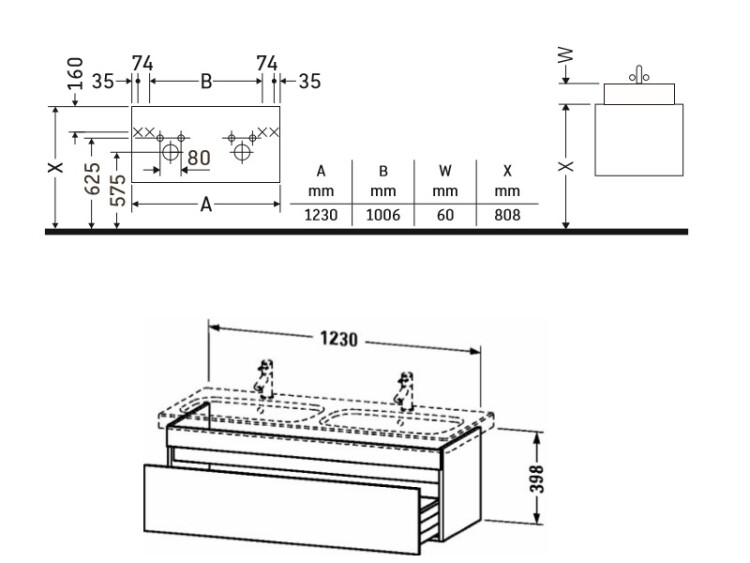Тумба под раковину, Duravit, Durastyle, ширина, мм-1230, глубина, мм-448, высота, мм-398, тип установки-подвесной, форма мебели-прямоугольная, раковина-необходимо заказать, ящики-1, открывание-выдвижное, материал корпуса-ДСП меламиновая смола, материал фасада-ДСП меламиновая смола, цвет-орех натуральный, с вырезом под сифон и крышкой сифона Тумба под раковину, Duravit, Durastyle, шгв 1230*448*398, раковина-необходимо заказать, цвет-орех натуральный