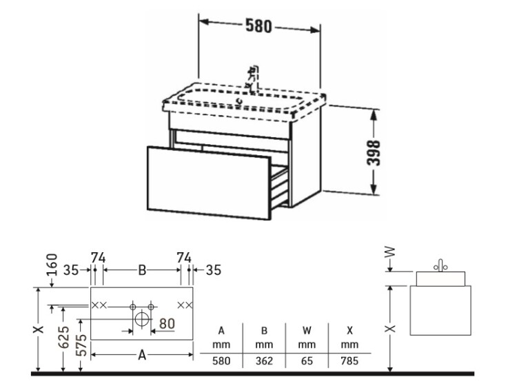 Тумба под раковину, Duravit, Durastyle, компакт, ширина, мм-580, глубина, мм-368, высота, мм-398, тип установки-подвесной, форма мебели-прямоугольная, раковина-необходимо заказать, ящики-1, открывание-выдвижное, материал корпуса-ДСП меламиновая смола, материал фасада-ДСП меламиновая смола, цвет-базальт матовый Тумба под раковину, Duravit, Durastyle, шгв 580*368*398, раковина-необходимо заказать, цвет-базальт матовый