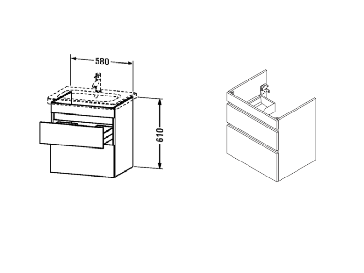 Тумба под раковину, Duravit, Durastyle, ширина, мм-580, глубина, мм-448, высота, мм-610, тип установки-подвесной, форма мебели-прямоугольная, раковина-необходимо заказать, вырез под раковину-один, форма раковины-прямоугольная, ящики-2, открывание-выдвижное, крепёж-есть, материал корпуса-ДСП меламиновая смола, материал фасада-ДСП меламиновая смола, цвет-белый глянцевый, с вырезом и крышкой для сифона Тумба под раковину, Duravit, Durastyle, шгв 580*448*610, раковина-необходимо заказать, цвет-белый глянцевый