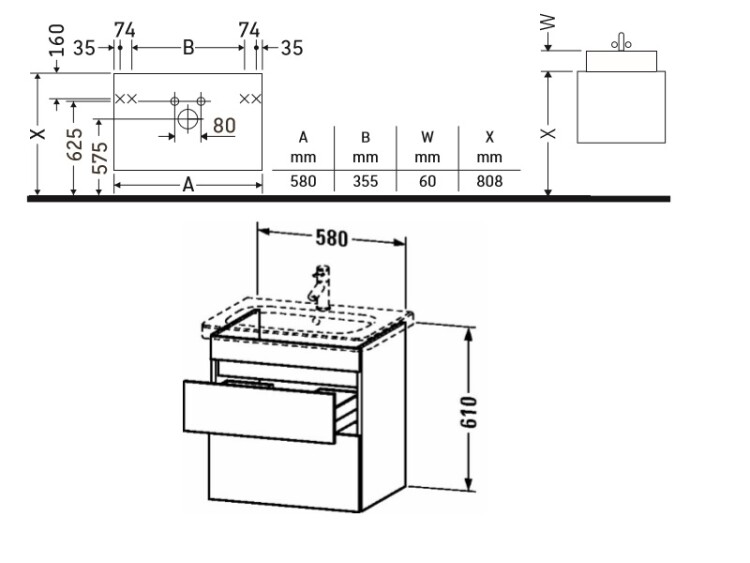 Тумба под раковину, Duravit, Durastyle, ширина, мм-580, глубина, мм-448, высота, мм-610, тип установки-подвесной, форма мебели-прямоугольная, раковина-необходимо заказать, ящики-2, открывание-выдвижное, материал корпуса-ДСП меламиновая смола, материал фасада-ДСП меламиновая смола, цвет-белый матовый, комплектация-выркз и крышка для сифона Тумба под раковину, Duravit, Durastyle, шгв 580*448*610, раковина-необходимо заказать, цвет-белый матовый