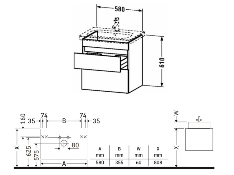 Тумба под раковину, Duravit, Durastyle, ширина, мм-580, глубина, мм-448, высота, мм-610, тип установки-подвесной, форма мебели-прямоугольная, раковина-необходимо заказать, ящики-2, открывание-выдвижное, верхний ящик с вырезом и крышкой для сифона, материал корпуса-ДСП меламиновая смола, материал фасада-ДСП меламиновая смола, цвет-орех натуральный Тумба под раковину, Duravit, Durastyle, шгв 580*448*610, раковина-необходимо заказать, цвет-орех натуральный