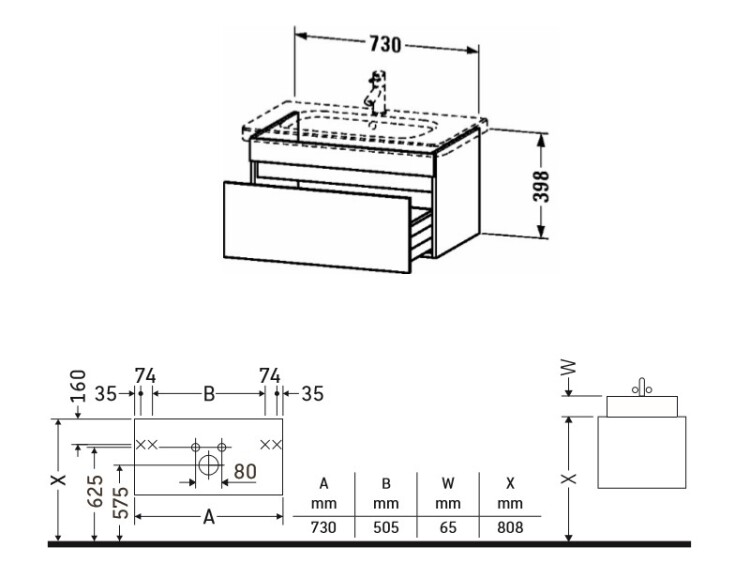 Тумба под раковину, Duravit, Durastyle, ширина, мм-730, глубина, мм-448, высота, мм-398, тип установки-подвесной, форма мебели-прямоугольная, раковина-необходимо заказать, ящики-1, открывание-выдвижное, материал корпуса-ДСП меламиновая смола, материал фасада-ДСП меламиновая смола, цвет-белый матовый Тумба под раковину, Duravit, Durastyle, шгв 730*448*398, раковина-необходимо заказать, цвет-белый матовый