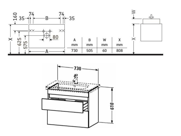 Тумба под раковину, Duravit, Durastyle, ширина, мм-730, глубина, мм-448, высота, мм-610, тип установки-подвесной, форма мебели-прямоугольная, раковина-необходимо заказать, ящики-2, открывание-выдвижное, материал корпуса-ДСП меламиновая смола, материал фасада-ДСП меламиновая смола, цвет-орех натуральный, комплектация-вырез и крышка для сифона Тумба под раковину, Duravit, Durastyle, шгв 730*448*610, раковина-необходимо заказать, цвет-орех натуральный