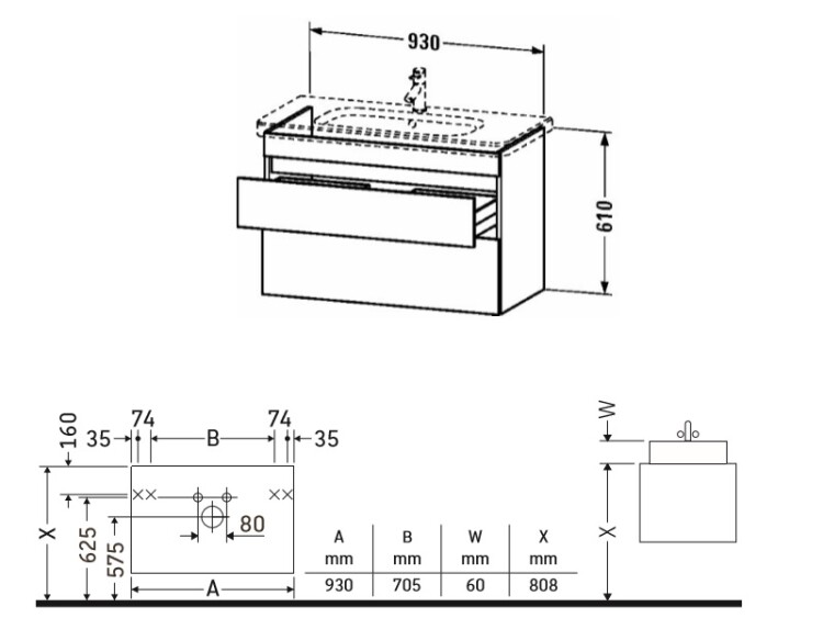 Тумба под раковину, Duravit, Durastyle, ширина, мм-930, глубина, мм-448, высота, мм-610, тип установки-подвесной, форма мебели-прямоугольная, раковина-необходимо заказать, ящики-2, открывание-выдвижное, верхний ящик с вырезом и крышкой для сифона, материал корпуса-ДСП меламиновая смола, материал фасада-ДСП меламиновая смола, цвет-белый матовый Тумба под раковину, Duravit, Durastyle, шгв 930*448*610, раковина-необходимо заказать, цвет-белый матовый