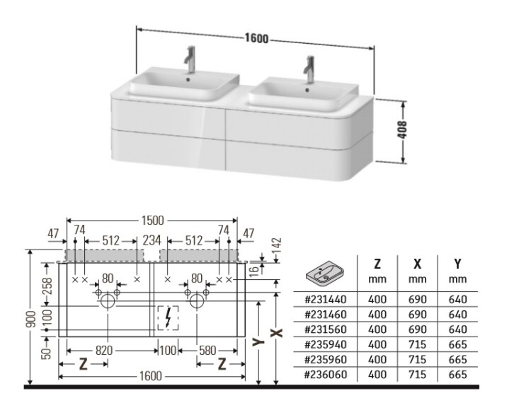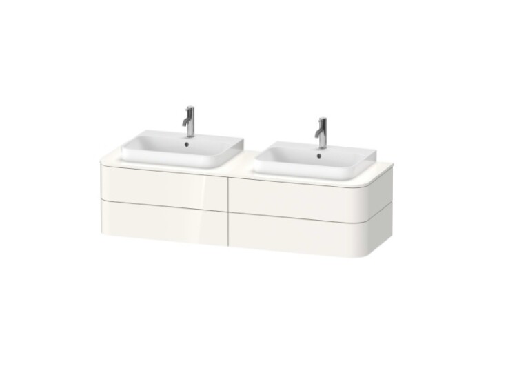 Тумба под раковину, Duravit, Happy D.2 Plus, ширина, мм-1600, глубина, мм-550, высота, мм-408, тип установки-подвесной, форма мебели-округлая, раковина-необходимо заказать, монтаж раковины-накладной с обеих сторон , ящики-4, открывание-выдвижное, цвет-белый глянцевый, верхний ящик с вырезом и крышкой для сифон Тумба под раковину, Duravit, Happy D.2 Plus, шгв 1600*550*408, раковина-необходимо заказать, цвет-белый глянцевый