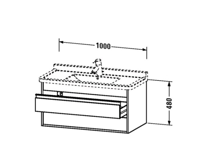 Тумба под раковину, Duravit, Ketho, ширина, мм-1000, глубина, мм-465, высота, мм-480, тип установки-подвесной, форма мебели-прямоугольная, раковина-необходимо заказать, ящики-2, открывание-выдвижное, материал корпуса-ДСП меламиновая смола, материал фасада-ДСП меламиновая смола, цвет-орех натуральный, верхний ящик с вырезом и крышкой для сифона Тумба под раковину, Duravit, Ketho, шгв 1000*465*480, раковина-необходимо заказать, цвет-орех натуральный