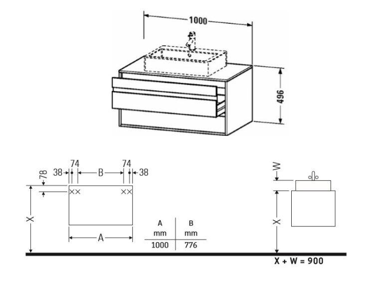 Тумба под раковину, Duravit, Ketho, ширина, мм-1000, глубина, мм-550, высота, мм-496, тип установки-подвесной, форма мебели-прямоугольная, раковина-необходимо заказать, вырез под раковину-в центре, монтаж раковины-накладной, консоль/столешница-есть, ящики-2, открывание-выдвижное, материал корпуса-ДСП меламиновая смола, материал фасада-ДСП меламиновая смола, цвет-базальт матовый, верхний ящик с вырезом и крышкой для сифона Тумба под раковину, Duravit, Ketho, шгв 1000*550*496, раковина-необходимо заказать, цвет-базальт матовый