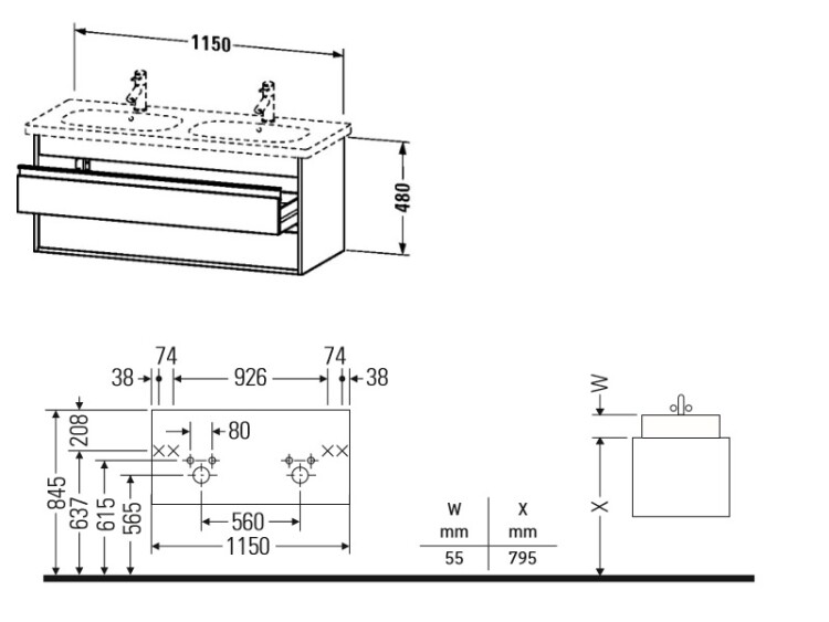 Тумба под раковину, Duravit, Ketho, ширина, мм-1150, глубина, мм-455, высота, мм-480, тип установки-подвесной, форма мебели-прямоугольная, раковина-необходимо заказать, ящики-2, открывание-выдвижное, материал корпуса-ДСП меламиновая смола, материал фасада-ДСП меламиновая смола, цвет-орех натуральный, с вырезом под сифон и и крышкой сифона Тумба под раковину, Duravit, Ketho, шгв 1150*455*480, раковина-необходимо заказать, цвет-орех натуральный