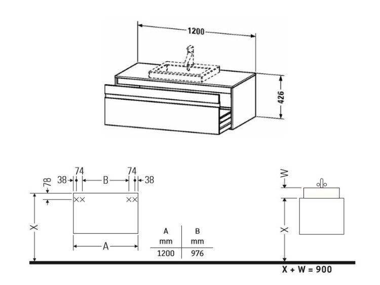 Тумба под раковину, Duravit, Ketho, ширина, мм-1200, глубина, мм-550, высота, мм-426, тип установки-подвесной, форма мебели-прямоугольная, раковина-необходимо заказать, вырез под раковину-в центре, монтаж раковины-встраиваемый, консоль/столешница-есть, ящики-1, открывание-выдвижное, материал корпуса-ДСП меламиновая смола, материал фасада-ДСП меламиновая смола, цвет-базальт матовый Тумба под раковину, Duravit, Ketho, шгв 1200*550*426, раковина-необходимо заказать, цвет-базальт матовый