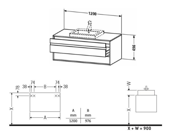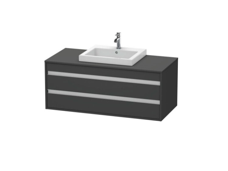 Тумба под раковину, Duravit, Ketho, ширина, мм-1200, глубина, мм-550, высота, мм-496, тип установки-подвесной, форма мебели-прямоугольная, раковина-необходимо заказать, вырез под раковину-в центре, монтаж раковины-встраиваемый, консоль/столешница-есть, ящики-2, открывание-выдвижное, материал корпуса-ДСП меламиновая смола, материал фасада-ДСП меламиновая смола, цвет-графит матовый, верхний ящик с вырезом и крышкой для сифона Тумба под раковину, Duravit, Ketho, шгв 1200*550*496, раковина-необходимо заказать, цвет-графит матовый