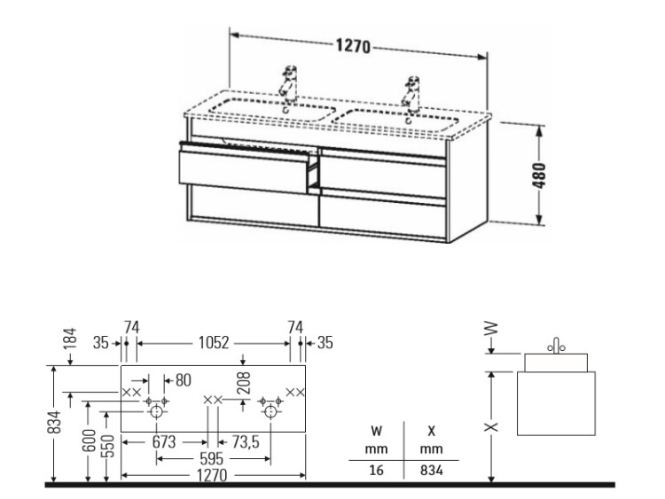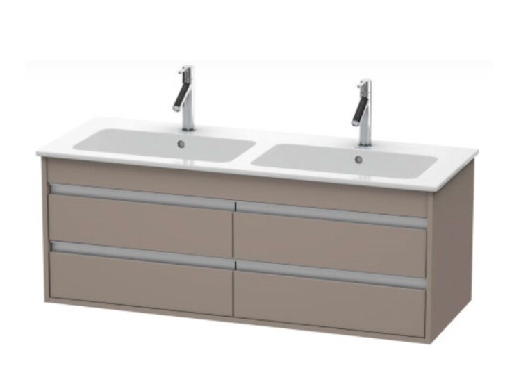 Тумба под раковину, Duravit, Ketho, ширина, мм-1270, глубина, мм-475, высота, мм-480, тип установки-подвесной, форма мебели-прямоугольная, раковина-необходимо заказать, ящики-4, открывание-выдвижное, верхний ящик с вырезом и крышкой для сифона, материал корпуса-ДСП меламиновая смола, материал фасада-ДСП меламиновая смола, цвет-базальт матовый Тумба под раковину, Duravit, Ketho, шгв 1270*475*480, раковина-необходимо заказать, цвет-базальт матовый