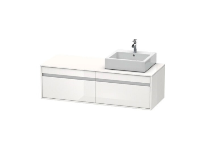 Тумба под раковину, Duravit, Ketho, ширина, мм-1400, глубина, мм-550, высота, мм-426, тип установки-подвесной, форма мебели-прямоугольная, раковина-необходимо заказать, вырез под раковину-справа, монтаж раковины-накладной, консоль/столешница-есть, ящики-2, открывание-выдвижное, материал корпуса-ДСП ламинат, материал фасада-ДСП ламинат, цвет-белый глянцевый Тумба под раковину, Duravit, Ketho, шгв 1400*550*426, раковина-необходимо заказать, цвет-белый глянцевый