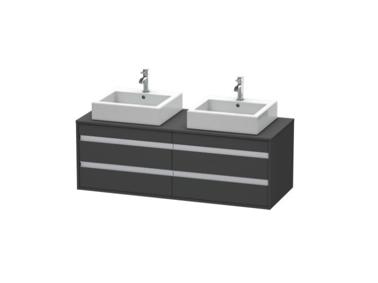 Тумба под раковину, Duravit, Ketho, ширина, мм-1400, глубина, мм-550, высота, мм-496, тип установки-подвесной, форма мебели-прямоугольная, раковина-необходимо заказать, вырез под раковину-два, монтаж раковины-накладной с обеих сторон , консоль/столешница-в комплекте, ящики-4, открывание-выдвижное, ящик под умывальником с вырезом и крышкой для сифона, материал корпуса-ДСП меламиновая смола, материал фасада-ДСП меламиновая смола, цвет-графит матовый Тумба под раковину, Duravit, Ketho, шгв 1400*550*496, раковина-необходимо заказать, цвет-графит матовый