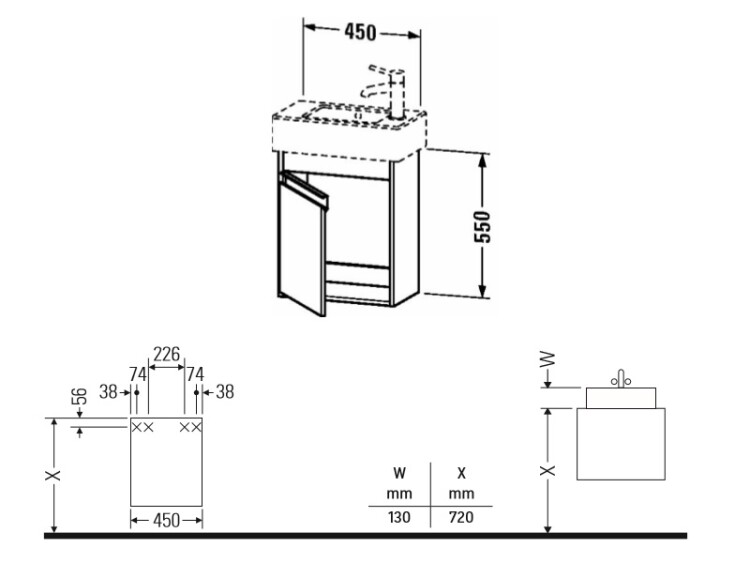 Тумба под раковину, Duravit, Ketho, ширина, мм-450, глубина, мм-225, высота, мм-550, тип установки-подвесной, форма мебели-прямоугольная, раковина-необходимо заказать, дверцы-есть, открывание-распашное, петли-слева, материал корпуса-ДСП меламиновая смола, материал фасада-ДСП меламиновая смола, цвет-белый матовый Тумба под раковину, Duravit, Ketho, шгв 450*225*550, петли-слева, раковина-необходимо заказать, цвет-белый матовый