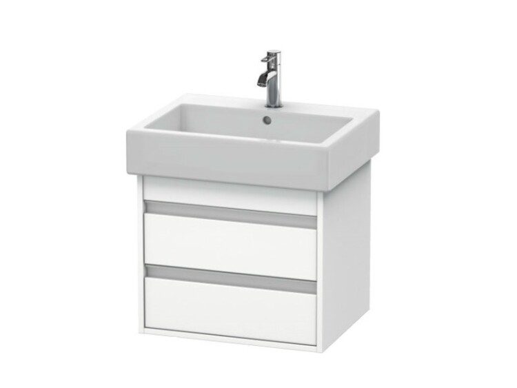 Тумба под раковину, Duravit, Ketho, ширина, мм-550, глубина, мм-440, высота, мм-480, тип установки-подвесной, форма мебели-прямоугольная, раковина-необходимо заказать, ящики-2, открывание-выдвижное, материал корпуса-ДСП меламиновая смола, материал фасада-ДСП меламиновая смола, цвет-белый матовый, верхний ящик с вырезом и крышкой для сифона Тумба под раковину, Duravit, Ketho, шгв 550*440*480, раковина-необходимо заказать, цвет-белый матовый