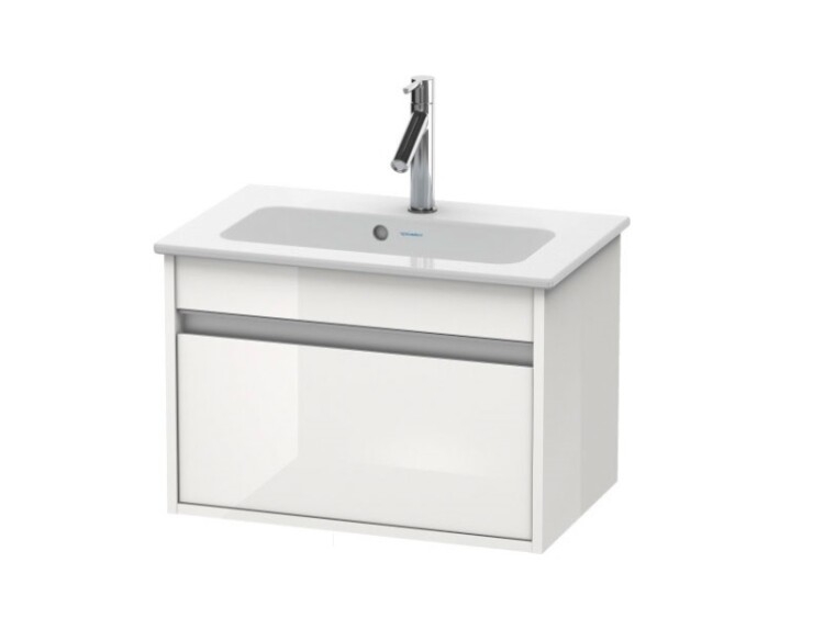 Тумба под раковину, Duravit, Ketho, ширина, мм-600, глубина, мм-385, высота, мм-410, тип установки-подвесной, форма мебели-прямоугольная, раковина-необходимо заказать, ящики-1, открывание-выдвижное, материал корпуса-ДСП ламинат, материал фасада-ДСП ламинат, цвет-белый глянцевый Тумба под раковину, Duravit, Ketho, шгв 600*385*410, раковина-необходимо заказать, цвет-белый глянцевый